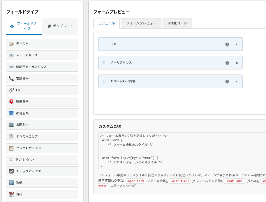 MW FORMやContact Form7よりもシンプルな設定画面で、基本的なフォーム設定がすぐに完了します